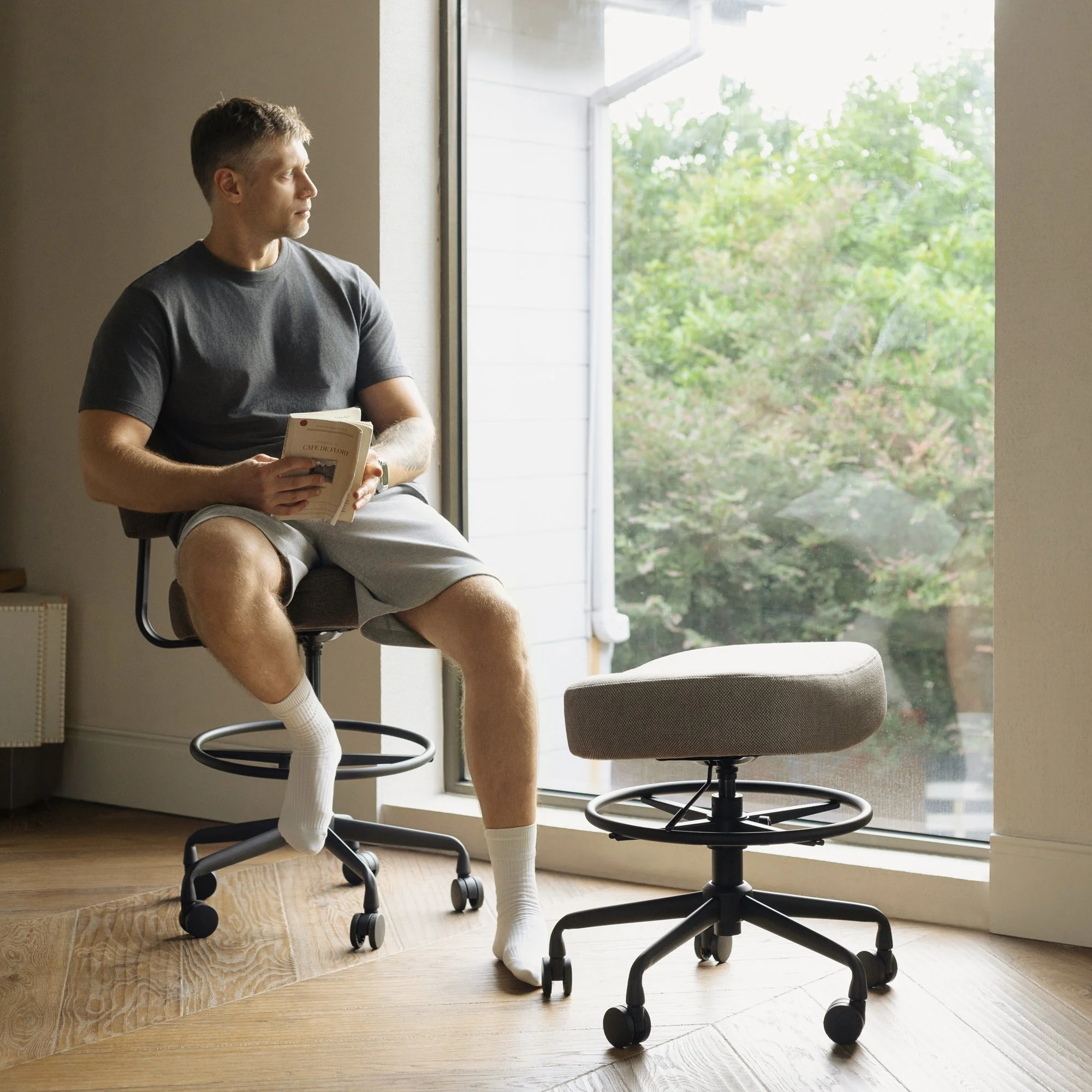 Built to Last: Reinforced matte black iron base and high-performance hydraulic lift system support up to 400 lbs with quiet, smooth movement on any floor.