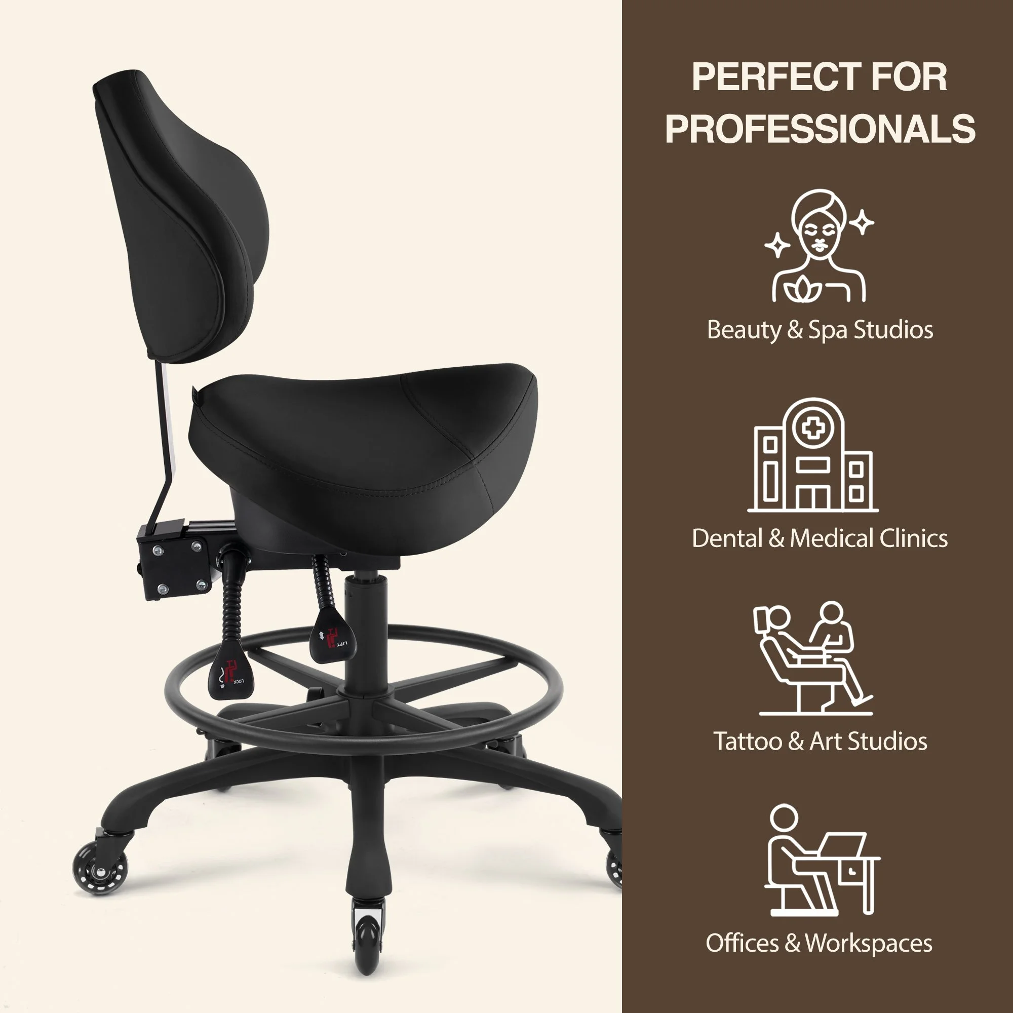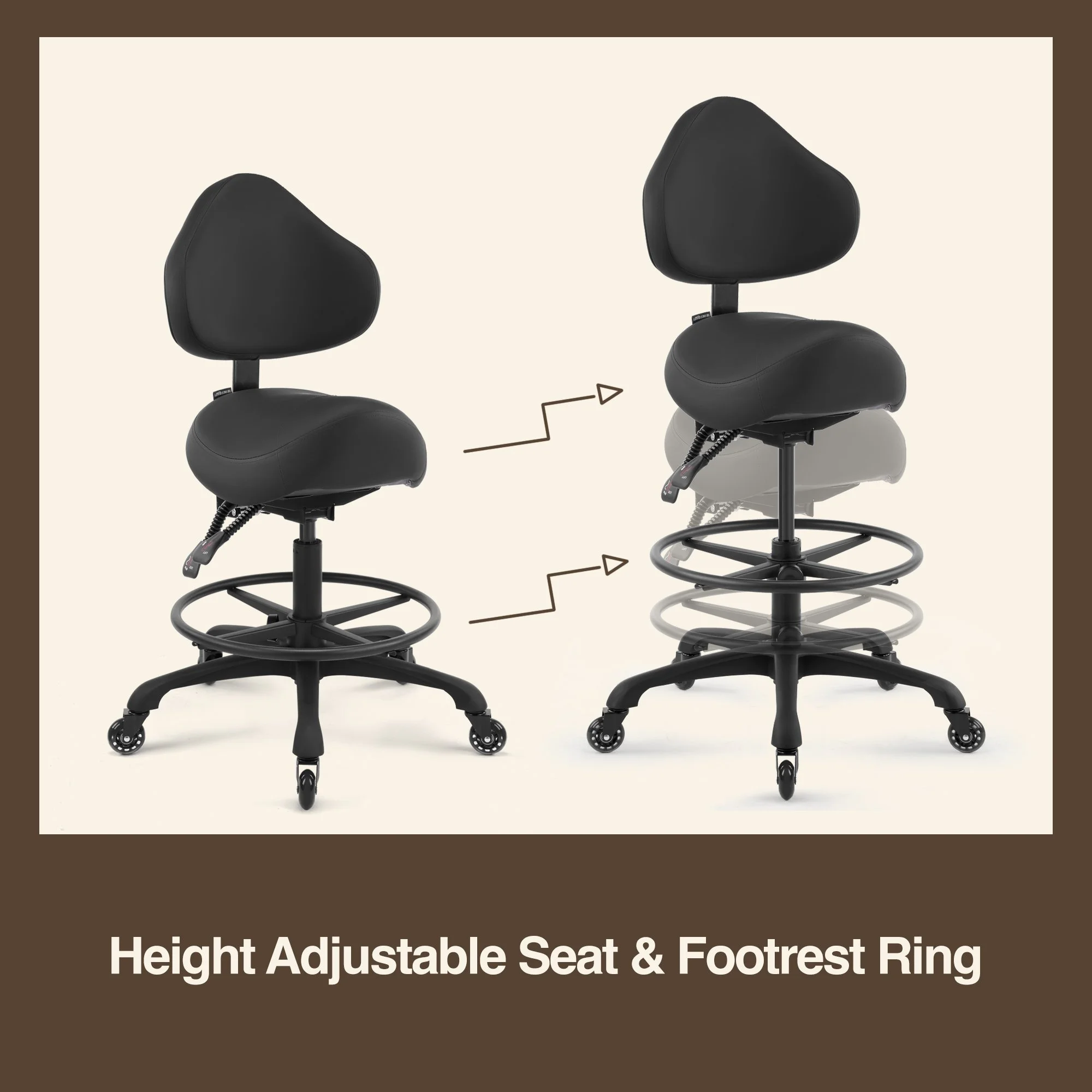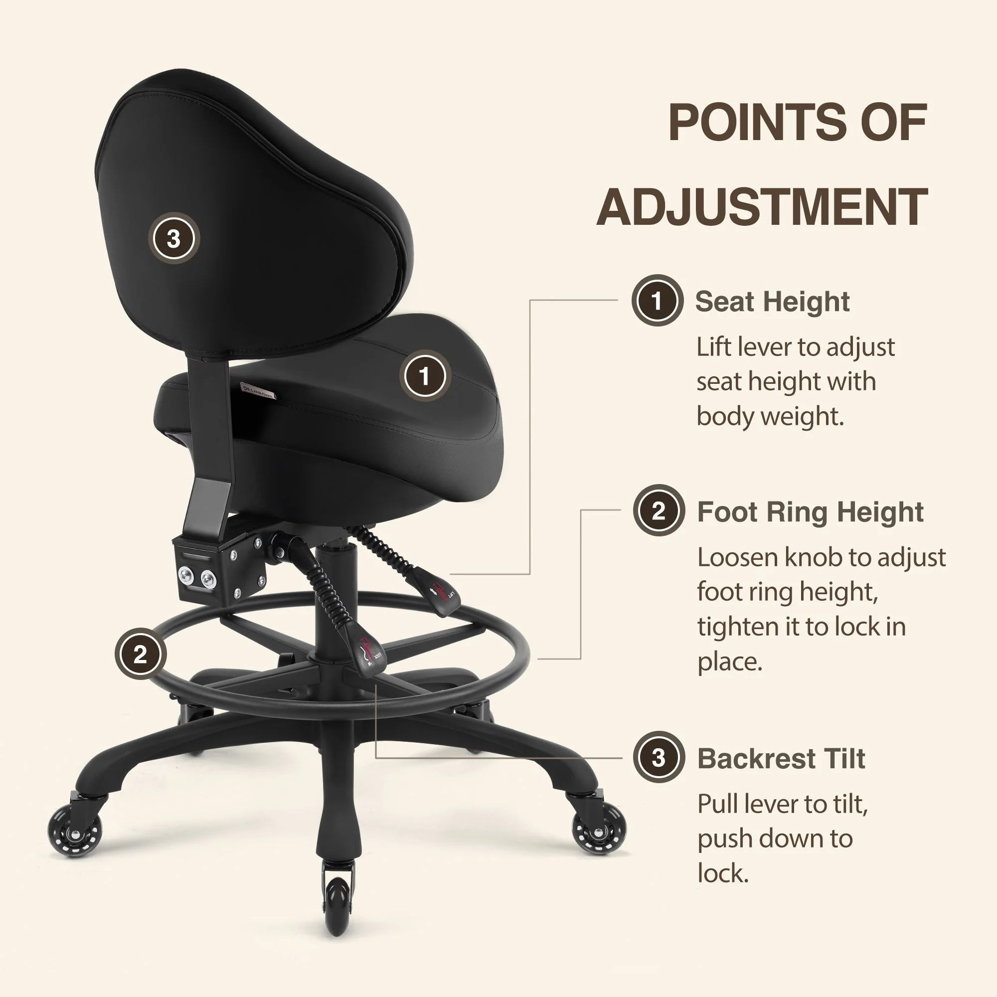 ErgonomicSaddle Stool with Backrest and Footrest Ring